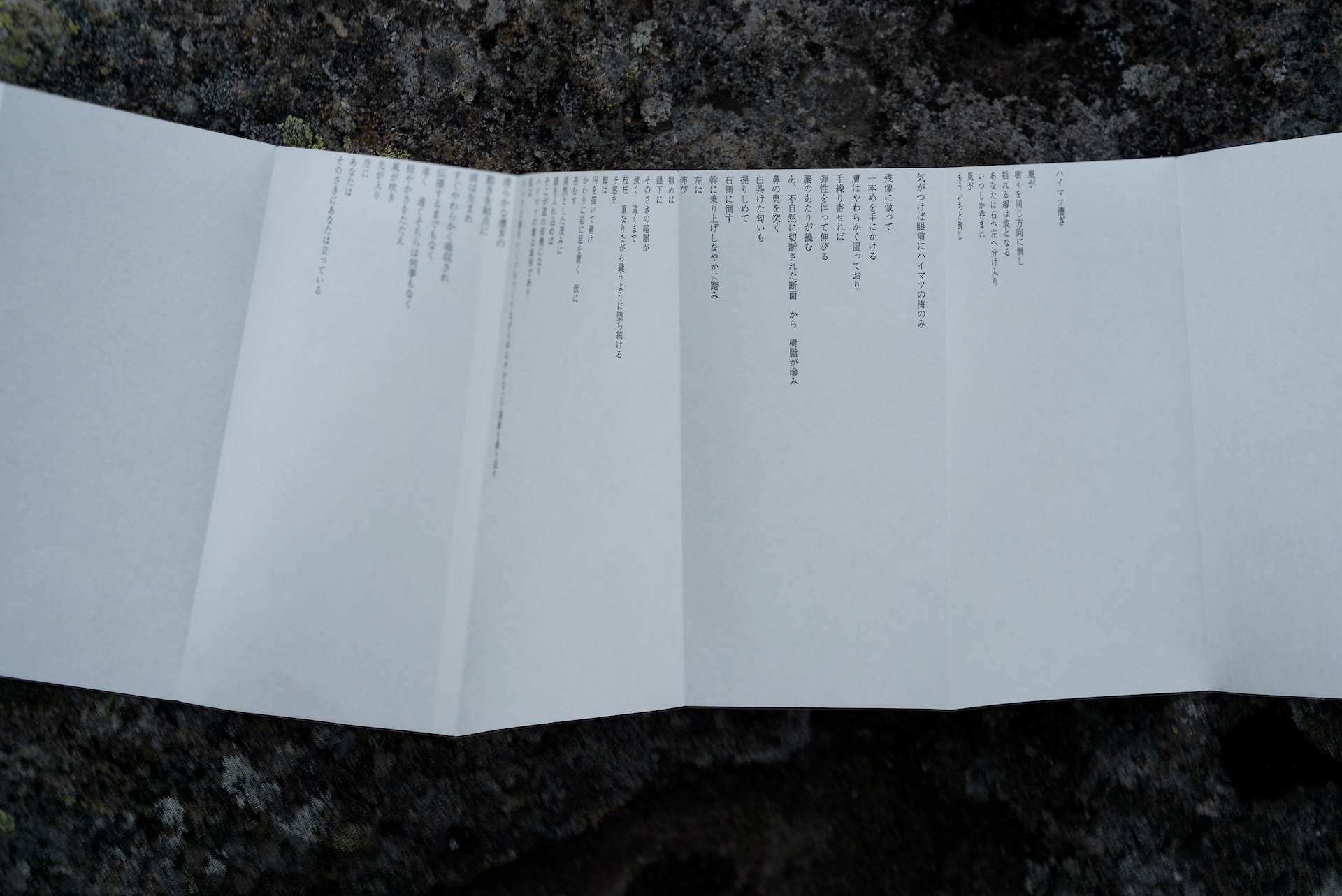 2000年生まれ。詩、パフォーマンス、メディアアートの領域において、皮膚感覚を起点とした自己統合、および他者/環境との関係性の再構築をテーマに活動する。 過剰に均質化・情報化された都市空間で、今宿は「わたしがかんたんにばらけてしまう」と繰り返し感じてきた。統合を失った身体は、ときにぐったりと重く、ときに恐ろしく軽くなる。このような身体の統合を失調する感覚に対して、皮膚への反復的なアプローチ——圧迫、熱、振動、よろめき——を通して、自己を再定義する装置を制作している。そしてこれらの装置に他者をも巻き込み、互いの輪郭を揺さぶり合うことで、感覚の共有と変容を促す新しいコミュニケーションへの回路をひらくことを試みている。 主な受賞に第1回西脇順三郎賞新人賞。主な出版物に詩集『還るためのプラクティス』(七月堂)。