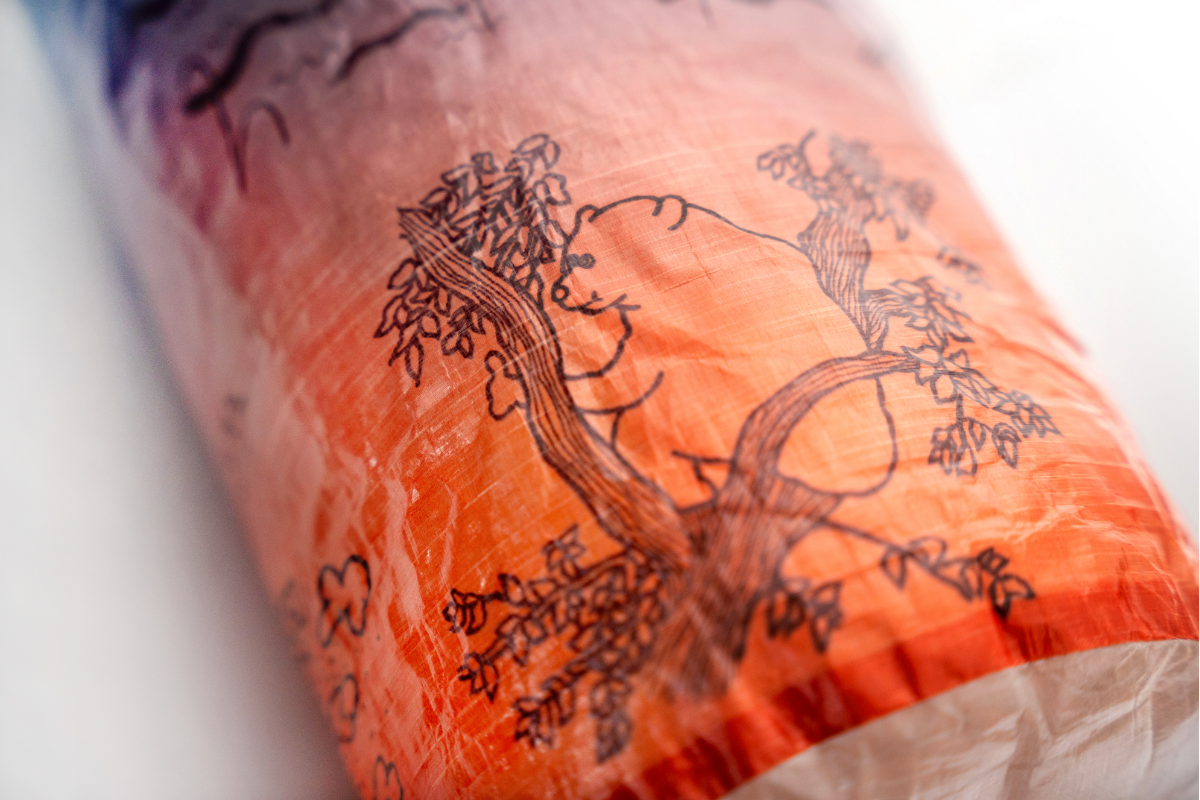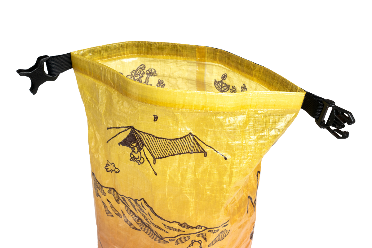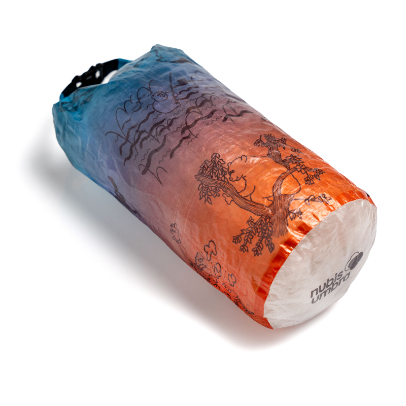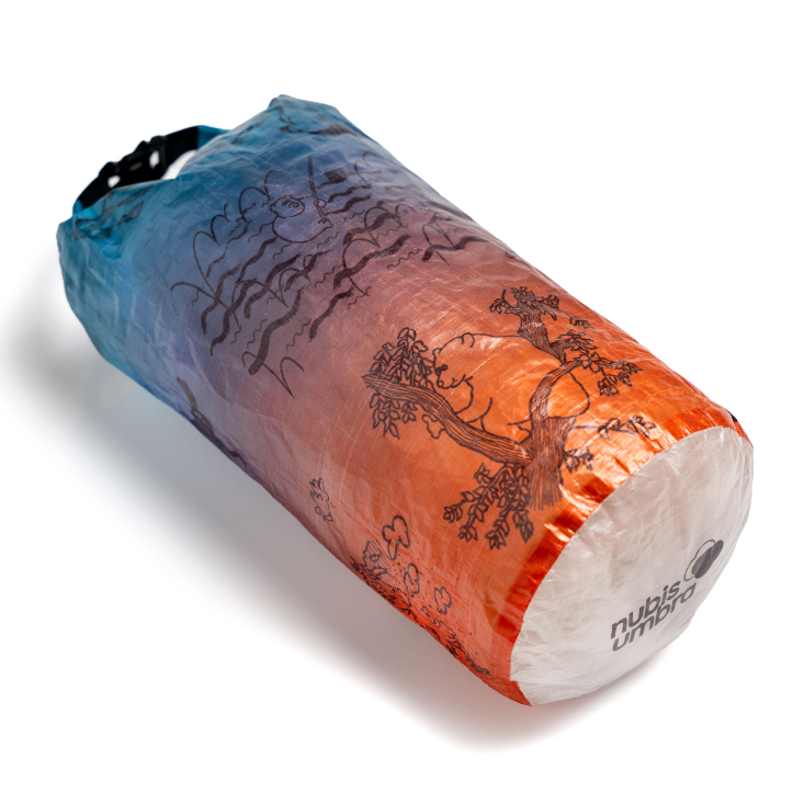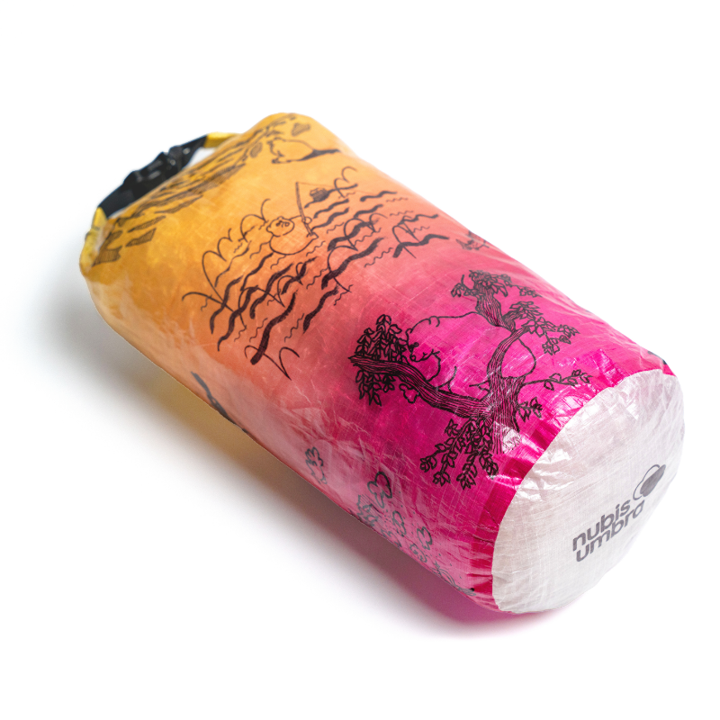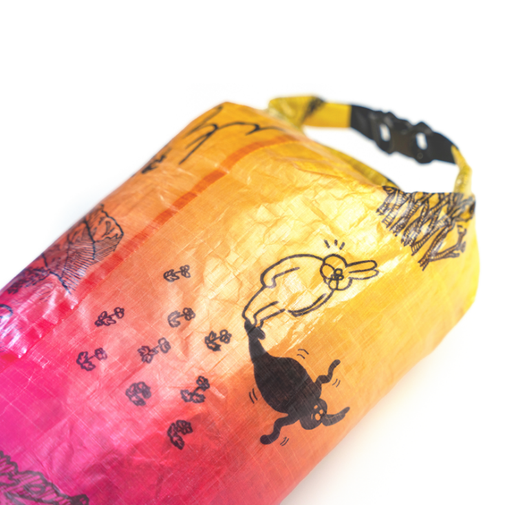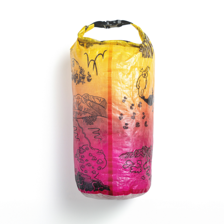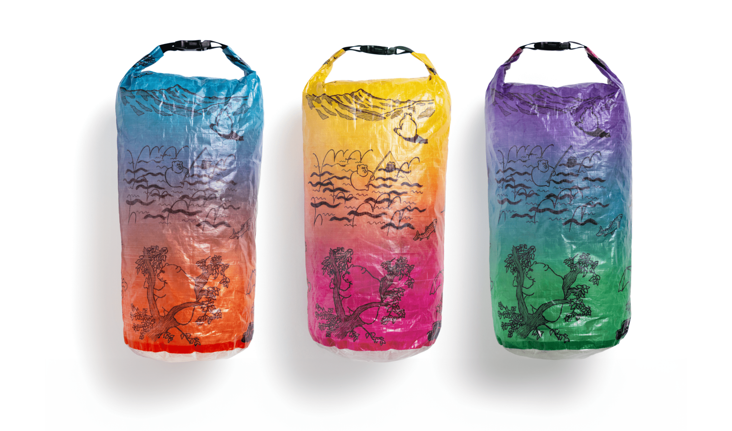 「森版画」同様、超軽量、防水、高耐久生地のDCF(Dyneema Composite Fabric)にプリントを施したスタッフサック「The bear life」が登場です。