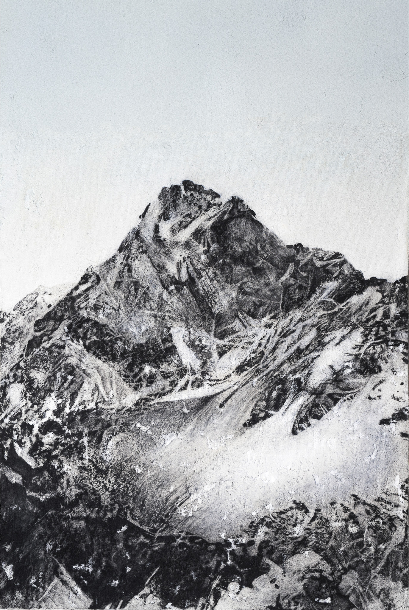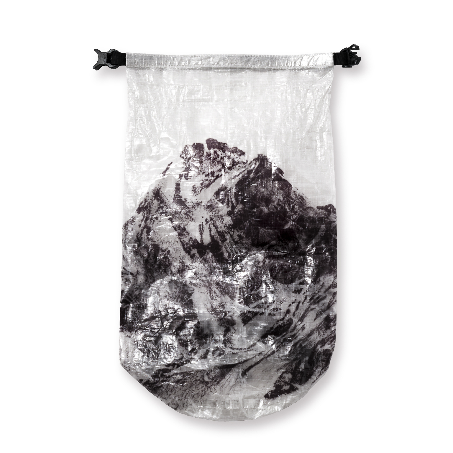 オリジナルアートは、木炭画家・伊藤大悟さんの「To Cholatse」。 木炭を用いたこの作品では、光と影のコントラストが際立ち、岩肌や雪の質感、霞がかった山肌が緻密かつ大胆なストロークで表現されています。 2023年にエベレスト街道を訪れた伊藤さんが目の当たりにしたこの山は、超越的な崇高さを湛えながらも、麓で暮らす人々の営みとともに静かに佇んでいました。 独自の技術で原画の質感をそのままに、DCF(Dyneema Composite Fabric)の上に再現しました。